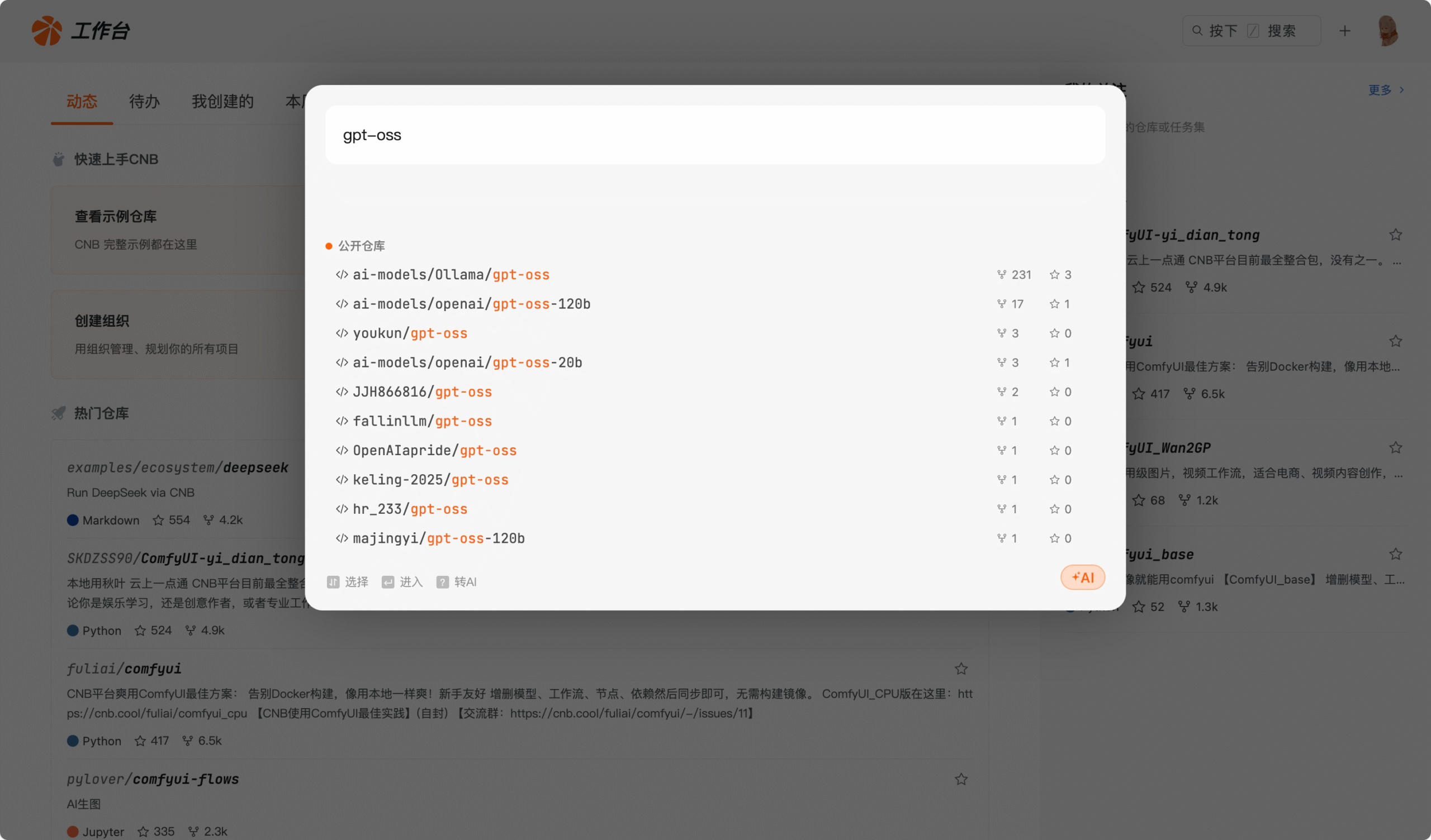 点击右上角的搜索,在弹出来的搜索框中输入 gpt-oss