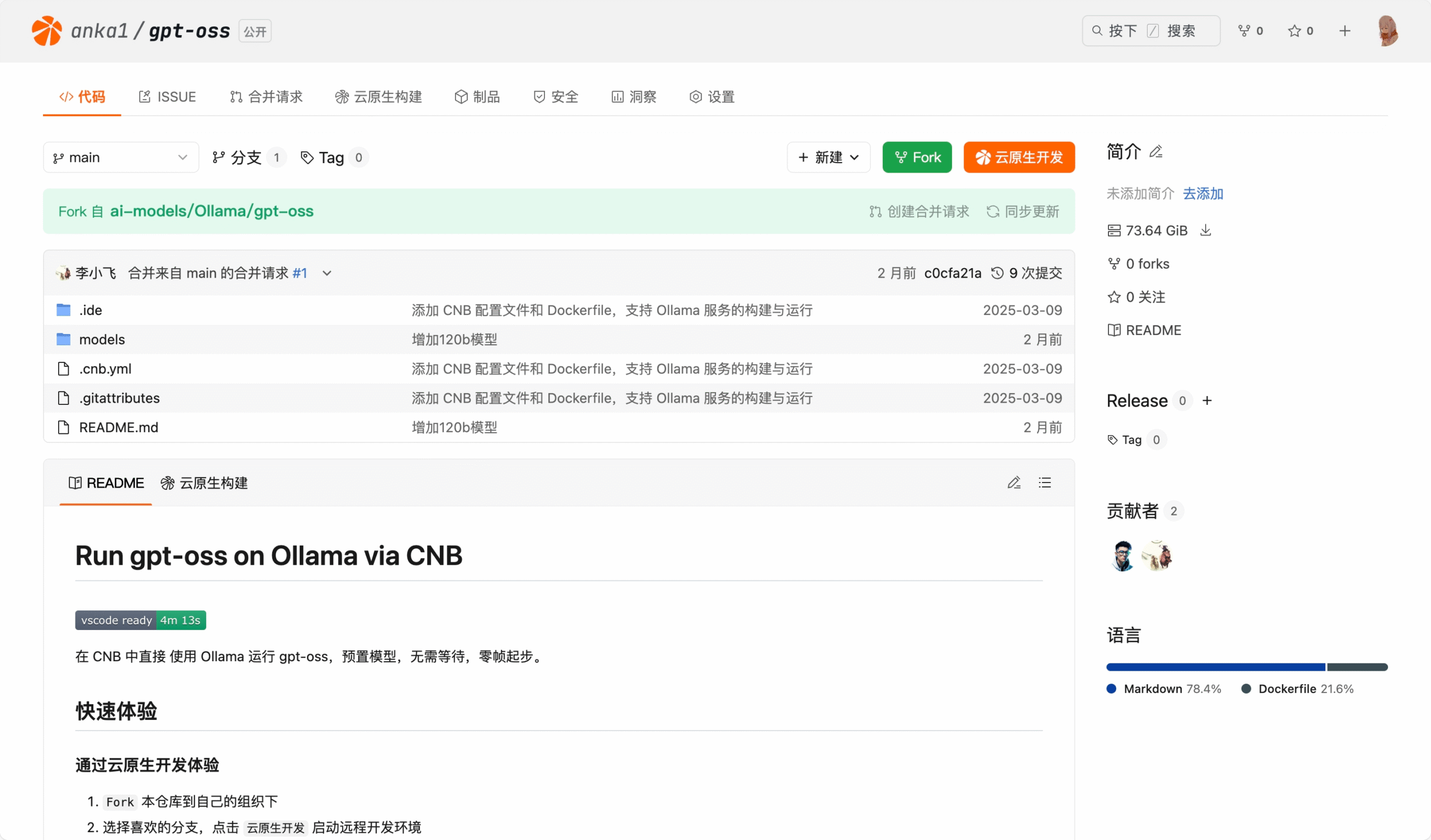 | 对象存储 | 100 GiB | 1 元/GiB/月 | 制品、LFS 对象、图片及附件 |