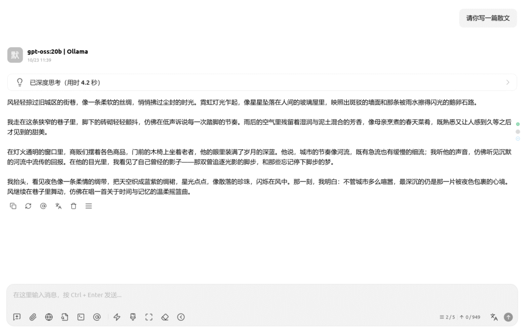 此时可以使用第三方LLM客户端(比如我这里使用的是Cherry Studio)来调用模型,这类客户端通常自带渲染 Markdown 的功能。